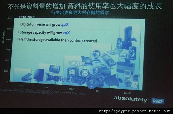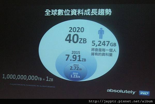 全球每年資料量都採倍數增長,預計2020年數位資料量會到達40ZB(1ZB=一億TB)。