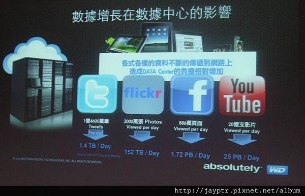 資料量增長對網路平台的影響。(YouTube每天會產生25PB、FB每日會產生1.72PB...等)