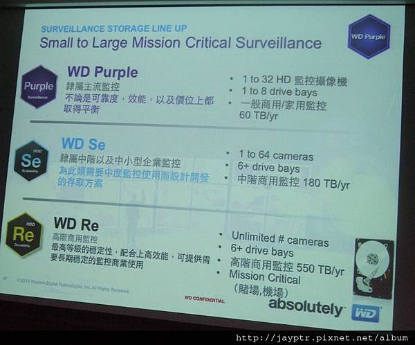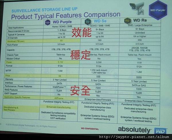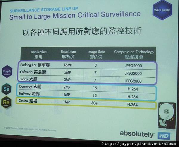因這三顆硬碟價格上都有差異,效能上也因此有差異,因此建議像停車場、美食街、大廳採用紫標當監控碟。玄關、走廊採用Se。賭場採用Re。