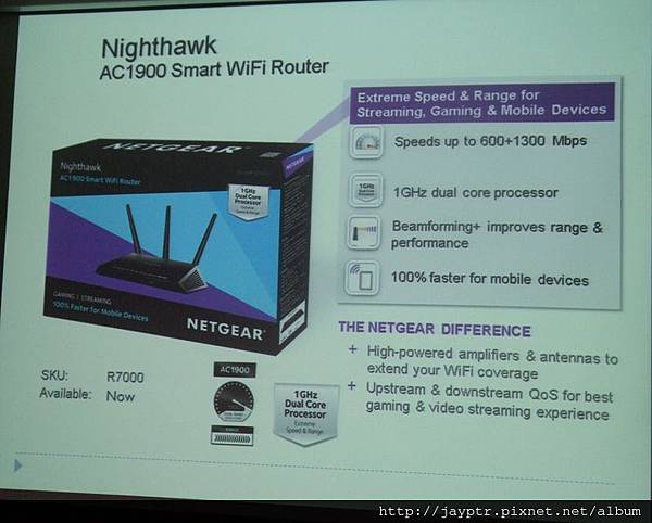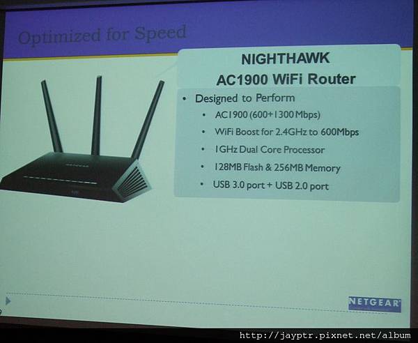 這次很榮幸參加XF主辦的"NETGEAR 建構數位家庭研討會",讓我了解NETGEAR和WD的許多非常實用的產品,這些產品可以幫助我們建置出舒適的家,這些產品中讓我覺得最有印象的是Nighthawk R7000,他讓802.11 n/ac都支援智慧動態指向天線技術,讓需要網路的地方有足夠的網路訊號,不需要的地方能夠只暴露在低電磁波下,畢竟電磁波對人體健康是有疑慮的,還是少接觸比較好。