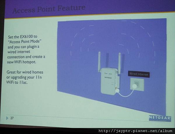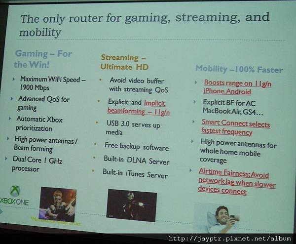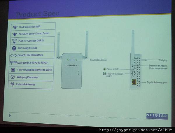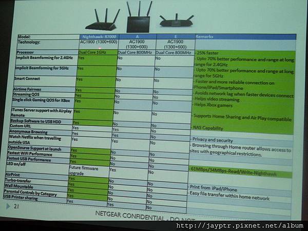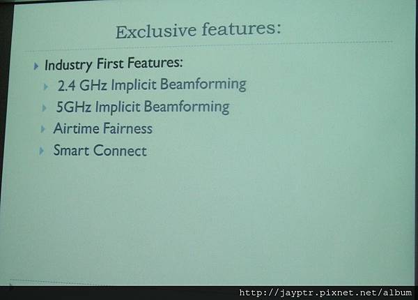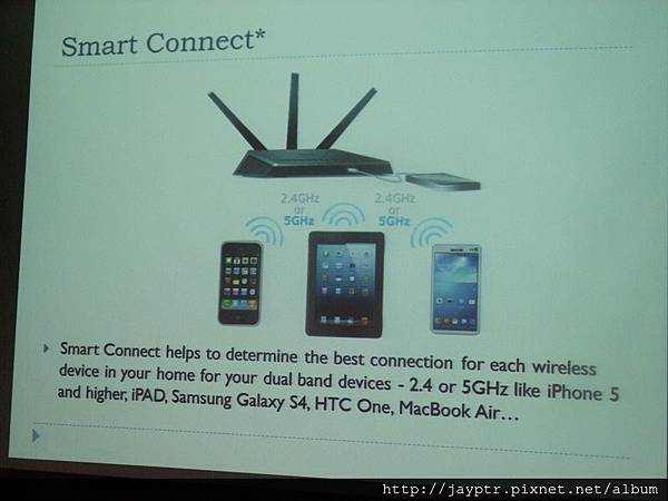 1.支援智慧動態指向天線技術在802.11 g/n環境下(這個技術本來只支援於802.11ac,但是Netgear讓此技術支援到802.11 g/n),而且相容於iPhone和Android平台。