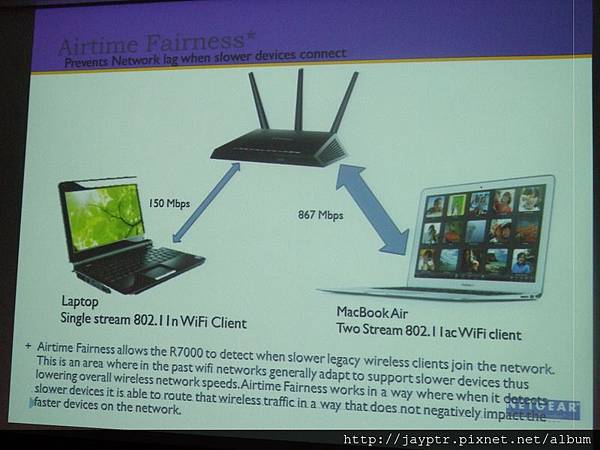 Airtime Fairness技術能夠把比較慢802.11n的封包與802.11ac的封包分開處理,以防相互拖累網路速度。