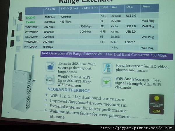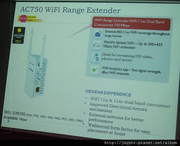 Netgear EX6100具備支援802.11ac橋接技術,但是這台沒有R7000強大,主要都是當橋接器使用,至於現在許多天線都三根,這台怎麼只有兩根天線勒,解說員說有三根天線的設計,只是價格過於昂貴,因此沒引進台灣。