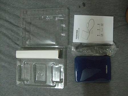 來取出內容物吧,內容物有行動硬碟一顆、傳輸線和說明書一張。