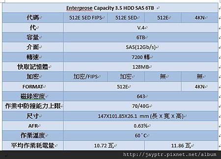 [▼]6TB SAS介面有四種不同規格的硬碟詳細規格