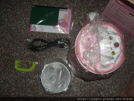 看到主角了,是Hello Kitty的樣式的豆漿機,以及其他物品,