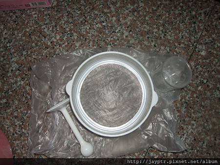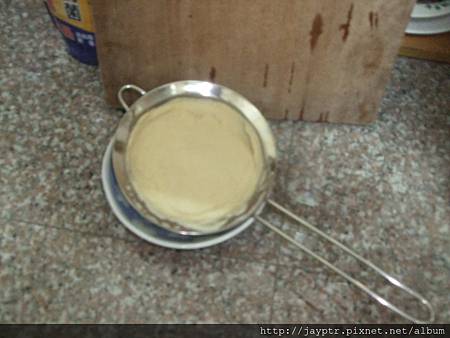這是煮好的豆漿所濾掉的豆渣,因為產品送的是塑膠邊緣的濾網,因此蠻怕塑化劑的,只好用我們自己的濾網,