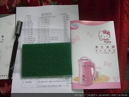 剩下是說明書那包,內有刷子、菜瓜布、說明書(那有蓋一個保固章,保固期限是一年)、以及食譜,