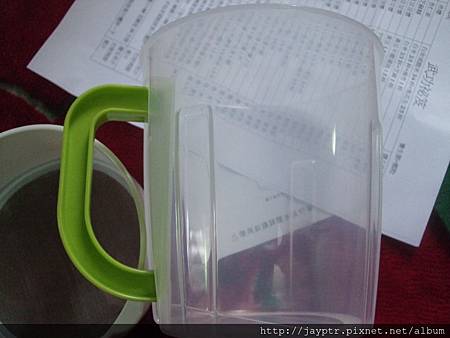 ,最後我發現綠色手把可以跟杯子結合也,但是這個東西是塑膠製的,不太敢用來裝煮好的豆漿,
