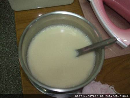 這是完成品豆漿,但是還是有點沙沙的豆渣,因為不是用胚布來過濾,這個沙沙的程度還可以接受,
